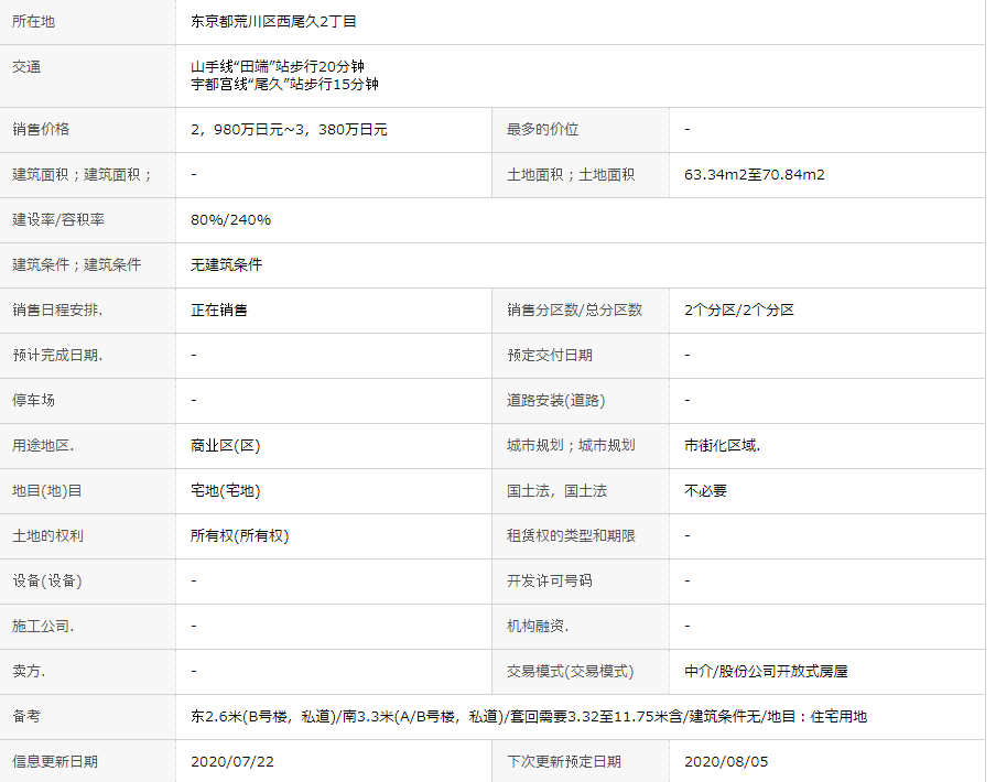 | 价格 | 3380万日元 | 房产类型 | 土地 |