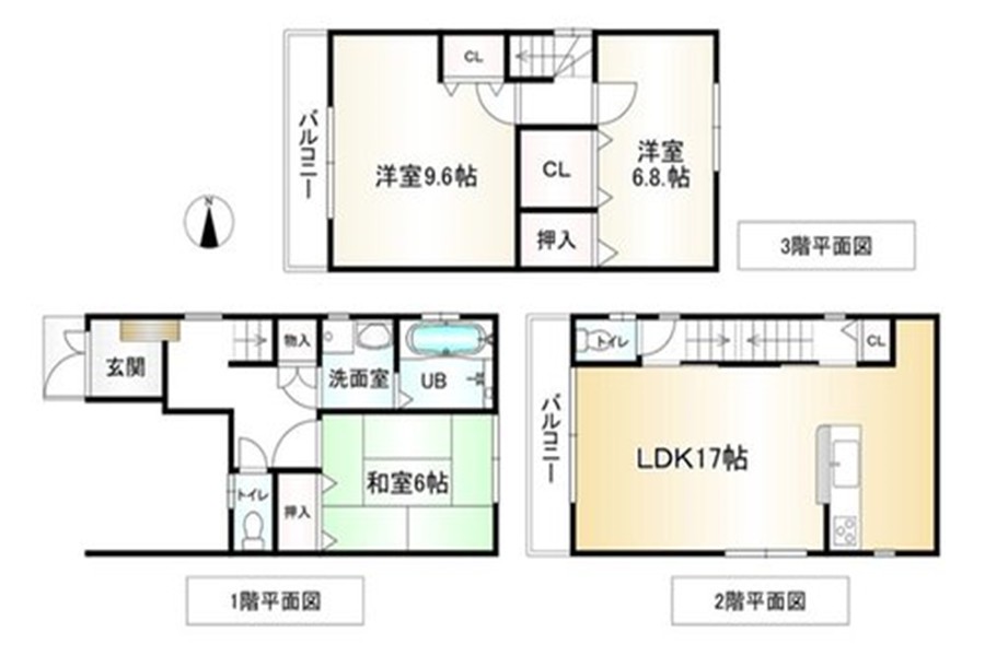 大国2丁目 一户建,2005年8月建钢架三层建筑。大阪环状线今宫站步行400米!大阪Metro御堂筋线大国町站500米!