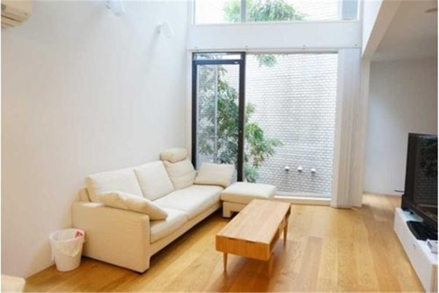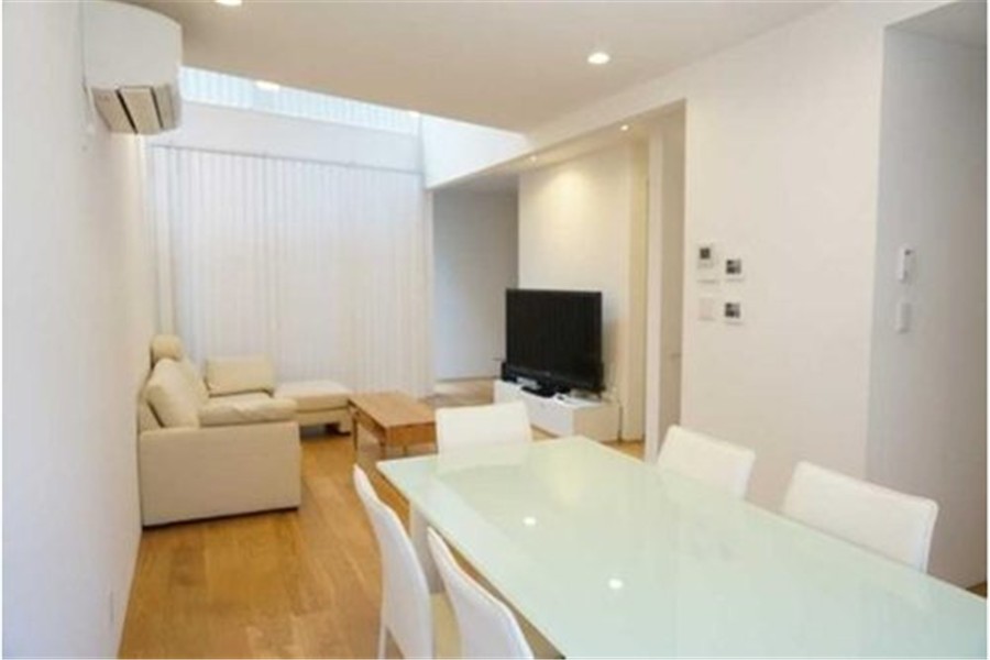 赤坂8一户建,2012年12月建成的木制三层建筑。建在安静的住宅区。带中庭的客厅餐厅。