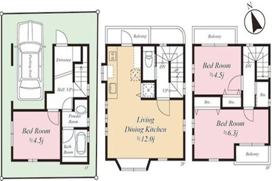新宿区北新宿3丁目户建。JR总武中央线“大久保”站步行500米。三室一厅+车库空间。