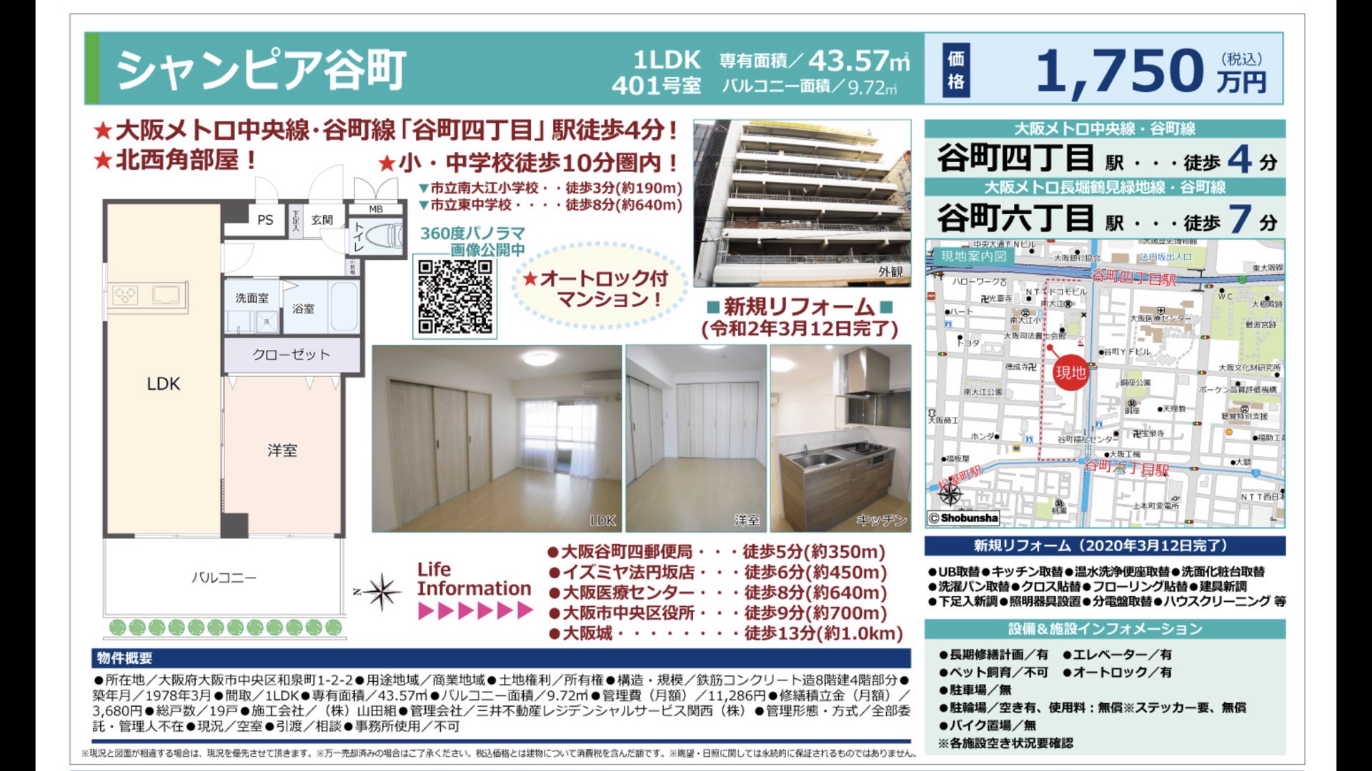 1978年3月建,位于大阪市中央区,交通便利。管理费和房屋维修费都比较低,将来自己居住也很划算。公寓楼体耐震结构,有快递置物箱,住户24小时可以扔垃圾,有自行车停车场,电梯设置,汽车停车场,自动门锁和监控。室内可以养宠物,配有暖气房,24小时新风系统,电视监控,24小时应急系统,开放式厨房,浴室干燥机、光纤网络。