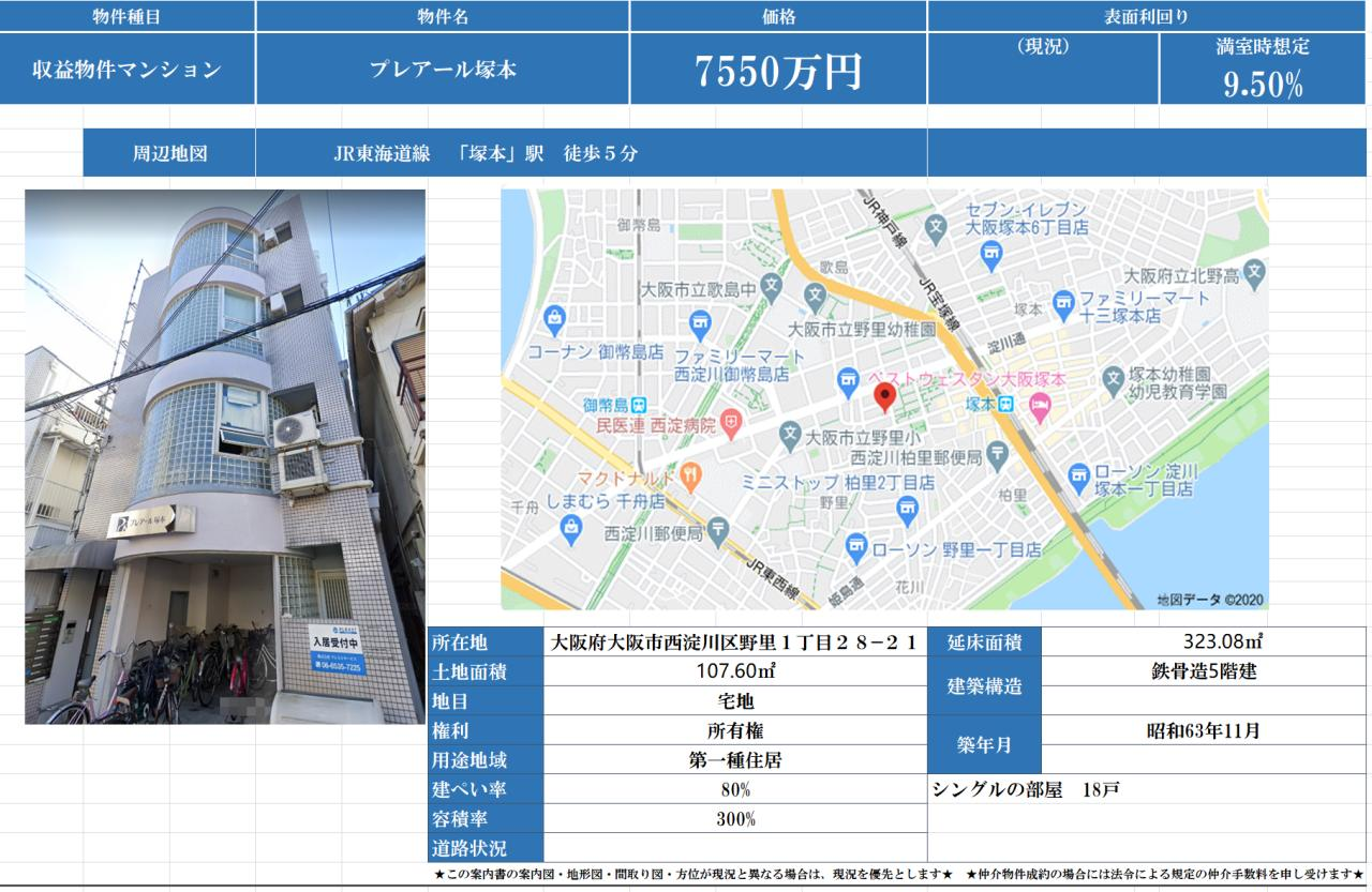 公寓位大阪市西淀川区野里1丁目,到塚本站需5分钟,在通勤通学上非常便利。正因为有这样的优势,租赁需求较高,可以期待较稳定的投资。公寓附近超市、公园、饮食店等徒步10分钟以内均可到达,生活方便。